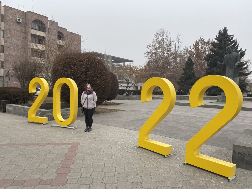 We arrived back in Yerevan with enough time to stop by the Folk Art Museum, and there we experienced some of the infamous Armenian hospitality. As soon as we walked in, we were greeted by two little grandmas, who asked us what language we spoke, then motioned for us to follow them. We followed them through the museum, thinking, “ummm, what?” and into a back room, where it turns out, the whole staff was having their end of the year party! A couple of them spoke English, and invited us to stay for the party and to enjoy some New Year’s cake, which they cut into pieces and shared with us. Neither of us got the piece with the coin in it, which would have meant good luck for the new year, but honestly at that point, we were feeling pretty lucky to be having the chance to experience an Armenian party. It was absolutely lovely, and a perfect end to our trip.