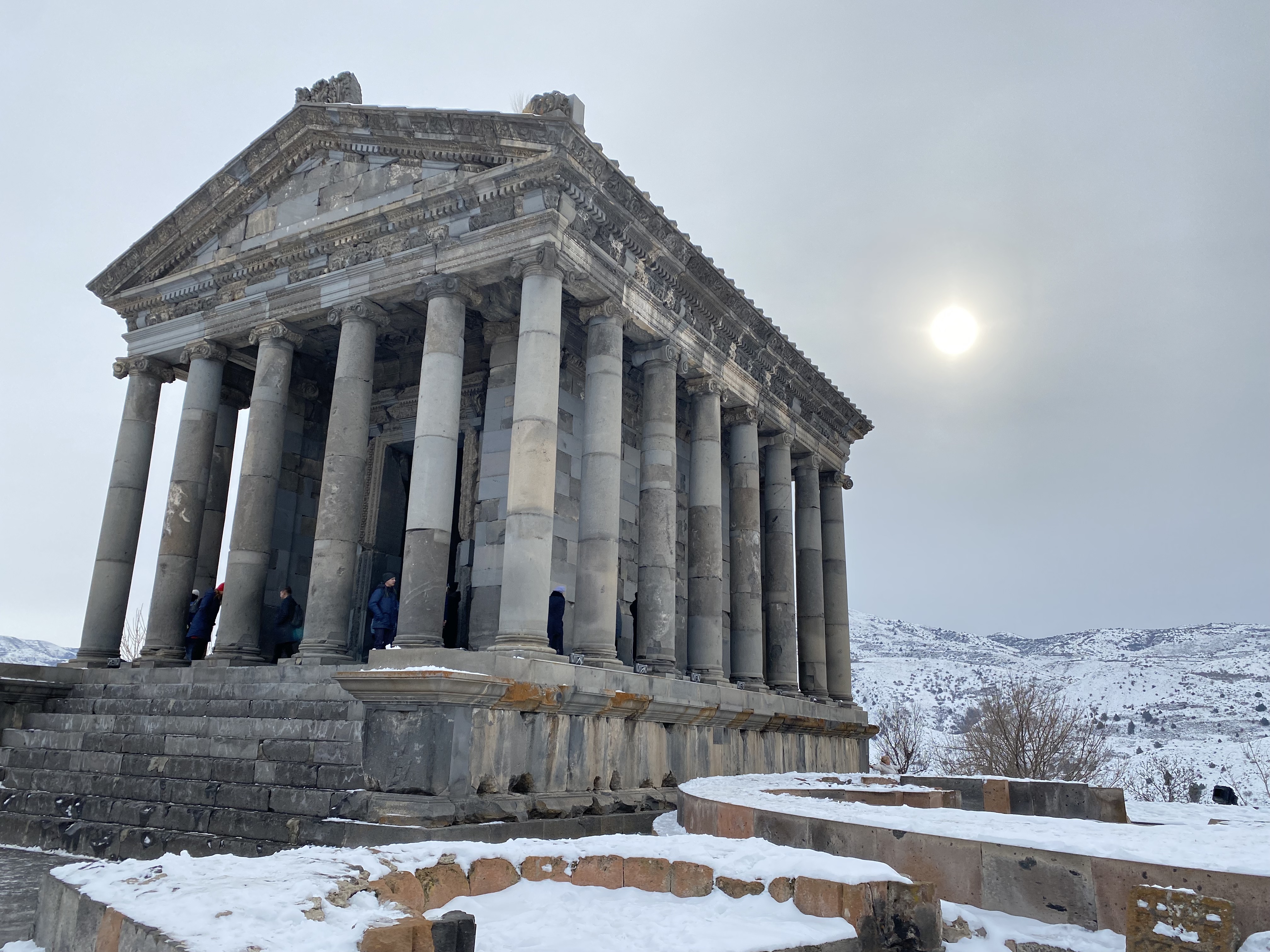 On our last day in Armenia, we spent the first half on a day trip, going to the Geghard Monastery, covered in snow in the mountains, the Garni Temple, also located up in the mountains with beautiful views, and finally a rock structure called the Symphony of Stones. Look at those awesome pictures!!